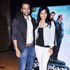 Jackky Bhagnani with his Youngistaan co-star Neha Sharma during the special screening of the Hollywood movie Pompeii, held in Mumbai.