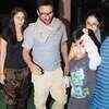 Saif arrives with daughter Sara Ali Khan and ladylove Kareena to attend the screening of Ranbir-Priyanka starrer 'Anjaana Anjaani' in Mumbai. (Pic: Viral Bhayani)