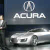 Jon Ikeda, principle designer at the Acura Design Center, introduces the Acura Advanced Sports Car Concept vehicle at the North American International Auto Show in Detroit, Sunday, January 7, 2007. (AP Photo/Tony Ding)