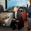 MD, GM India, Karl Sym and Vice President, GM India, P. Balendran with VP (Marketing & Sales), Ankush Arora pose with the new LPG model of Chevrolet 'Spark' during its launch in New Delhi on June 05, 2009.  (PTI/Vijay Kumar Joshi)