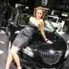 A model poses next to the Lancia Delta at the first press day of the Paris Auto Show, Thursday, Oct. 2, 2008. (AP Photo/Francois Mori)