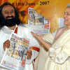 Sri Sri Ravi Shankar and Chairperson of Times Group launching the first issue of the Bangalore Mirror at the Art of Living Center - Photogallery