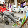 Artist N RamaKrishnan from Mumbai brush with his foot a n inspirational workshop for kids at Kala Ghoda festival begins in Mumbai. /news/events/mumbais-kala-ghoda-festival/eventshow/18364596.cms03