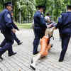 Police detain a member of women's activist group FEMEN, after their protest against government policy in front of the Cabinet building in Kiev, Ukraine, on August 24, 2011. (AP Photo/Efrem Lukatsky)