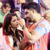 Bollywood actors and Owner of Jaipur Pink Panthers Kabaddi team Abhishek Bachchan and Aishwarya Rai Bachchan during the Pro Kabaddi League matches against Patna Pirates at Sawai Mansingh indoor stadium, in Jaipur. (PTI)