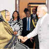 Prime Minister Narendra Modi greets Prime Minister of Bangladesh, Sheikh Hasina at 7 Race Course Road in New Delhi. (PTI)