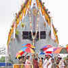 Union Minister of State for Defence, Rao Inderjit Singh and his wife Manita Singh and others during launch of Anti Submarine Warfare(ASW) Corvette in Kolkata on Tuesday. (PTI)