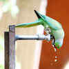 A parrot quenches its thirst from tap water drops during a hot day, in Jaipur. (PTI)