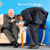 A businessman seeks blessing of Prime Minister Narendra Modi during the India-China Business Forum in Shanghai. (PTI)