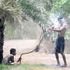 Children beat the heat by having a shower in the park in India. (BCCL)