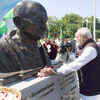 Prime Minister Narendra Modi unveiling a bust of Mahatma Gandhi at Bagtyarlyk Sports Complex at Ashgabat in Turkmenistan. (PTI)