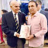 Indian veteran cricketer Madhav Apte and former captain Sunil Gavaskar during the Madhav Apte's 'As Luck Would Have It' book launch in Mumbai on May 29, 2015. (PTI)