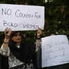 Congress party workers burn the effigy of Jammu and Kashmir Chief Minister Mehbooba Mufti during a protest in Jammu on Saturday.