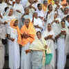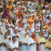Widows, who have been abandoned by their families, celebrate Diwali during an event organised by Sulabh International at K C Ghat in Vrindavan.