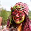 A student is all smiles as she takes part in Holi celebrations held at the Punjab University in Chandigarh. (BCCL)