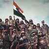 Indian soldiers wave national flag after winning the Kargil War in 1999.
