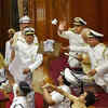 Marshals protecting Uttar Pradesh Governor Ram Naik from paper balls thrown by opposition MLAs during his speech in assembly. (PTI) /news/india/opposition-members-disrupt-governors-speech/ram-naik-in-up-assembly/eventshow/58700122.cms06