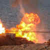 A fireball is seen as missiles launch during a joint exercise called the 'Great Prophet 17', in the southwest of Iran.