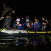 Asylum-seeking migrants' families disembark from an inflatable raft after crossing the Rio Grande river into the United States from Mexico in Roma, Texas.