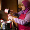 Fatema Zuhayli bottles homemade traditional Syrian hibiscus juice the day before Eid at her home in Louisville, Kentucky, US.