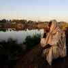 A man sits on the riverbank of Nile.