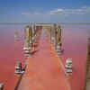 There are many pink lakes in Ukraine, which are much popular among tourists. The colour of the water turned into a bright pink due to the action of an algae which produces large amounts of beta-carotene.