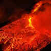 Large streams of red hot lava flow as Mount Etna, Europe's most active volcano, continues to erupt, as seen from the village of Fornazzo, Italy.