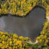 A lake in a shape of a heart is seen surrounded by autumn-coloured trees outside Balashikha, Moscow region, Russia on October 4, 2021.