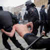 Law enforcement officers detain a man during a rally in support of jailed Russian opposition leader Alexei Navalny in Moscow, Russia.