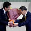 Japan's Chief Cabinet Secretary Yoshihide Suga presents Prime Minister Shinzo Abe with flowers after Suga was elected as new head of the ruling party at the Liberal Democratic Party's (LDP) leadership election in Tokyo, Japan . (Reuters) Japan's Chief Cabinet Secretary Yoshihide Suga presents Prime Minister Shinzo Abe with flowers after Suga was elected as new head of the ruling party at the Liberal Democratic Party's (LDP) leadership election in Tokyo, Japan . (Reuters) /news/world/yoshihide-suga-becomes-japans-new-pm/eventshow/78164732.cms03