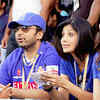 Badminton Player Jwala Gutta with former cricketer Azharuddin's son during the IPL4 cricket match between Deccan Chargers and Rajasthan Royals in Hyderabad. (PTI)