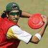 Pakistan's Younis Khan throws a frisby as teammate Mohammad Asif tackles him during practice for the Twenty20 World Championship at Super Sport Park in Pretoria, South Africa on Thursday, September 6, 2007. (AP Photo/Themba Hadebe)