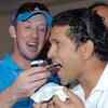 Sachin Tendulkar celebrating his brithday with Mumbai Indians team mates in Chennai on Thursday, April 24, 2008. (Photo/B A Raju)  (BCCL)