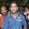() Indian cricket team's skipper M.S. Dhoni walks toward the bus upon his arrival at Quaid-e-Azam International airport in Karachi, Pakistan on Sunday, June 22, 2008. The Indian team arrived in Pakistan to participate in the six-nation Asia Cup cricket tournament that begins on June 24. (AP Photo/Shakil Adil)