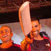 Bollywood actor Akshay Kumar and Delhi Daredevils skipper and world record holder of fastest triple century, Virender Sehwag at Delhi’s IPL team press conference in New Delhi on Monday, March 31, 2008. (Photo/Anindya Chattopadhyay)  (BCCL)
