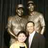Tiger Woods and his mother Kultida smile next to a bronze statue bearing the likeness of Tiger with his late father Earl Woods, during its unveiling in the the Tiger Woods Learning Center in California on January 21, 2008 - Photogallery