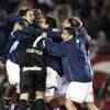 Argentina's Arsenal's goalkeeper Mario Cuenca (C) celebrates with teammates after scoring a goal against River Plate during Copa Sudamericana semi-finals football match. (AFP Photo/Alejandro Pagni) () Argentina's Arsenal's goalkeeper Mario Cuenca (C) celebrates with teammates after scoring a goal against River Plate during Copa Sudamericana semi-finals football match. (AFP Photo/Alejandro Pagni) /sports/football/copa-sudamericana-semi-finals/eventshow/2544820.cms02