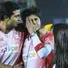 Kings XI Punjab's S Sreesanth is seen crying while teammate VRV Singh and team owner Preity Zinta console him, after the end of the IPL T20 match at Mohali on Friday - Photogallery