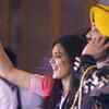 Kings XI Punjab's owner Preity Zinta along with singer Daler Mehndi cheering her team during the IPL T20 match against Mumbai Indians at Mohali on Friday - Photogallery