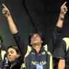 Kolkata Knight Riders' owner Shahrukh Khan celebrates his team win over Bangalore Royal Challengers during the inaugural IPL T20 Championship match at Chinnaswamy stadium in Bangalore. (PTI Photo/Shailendra Bhojak)