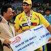 Matthew Hayden receives a Man of the Match cheque during the 2010 DLF Indian Premier League T20 match between Delhi Daredevils and Chennai Super Kings played at Feroz Shah Kotla Stadium. (Gtty Images/Vivek Shah)