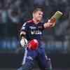 David Warner of DD celebrates scoring his century during the 2010 DLF Indian Premier League T20 match between DD and KKR played at Feroz Shah Kotla Stadium. (Getty Images/Mark Kolbe)