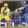 Sachin Tendulkar plays a shot as Chennai Super Kings' wicketkeeper M S Dhoni looks on during their Indian Premier League-3 match in Mumbai. (PTI)