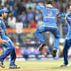 Mumbai Indians players celebrate the dismissal of a Royal Challengers Bangalore player during the IPL 6 match in Mumbai. (PTI) /sports/ipl/ipl-2013/ipl-6-match-37-mi-vs-rcb/eventshow/19856368.cms04