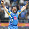 Mumbai Indians' Dhawal Kulkarni celebrates the dismissal of Royal Challengers Bangalore's Dilshan during the IPL 6 match in Mumbai. (PTI)See more of :