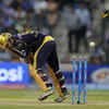 Sunil Narine of the Kolkata Knight Riders celebrates the wicket of Michael Hussey of the Mumbai Indians during match 1 of the Pepsi Indian Premier League Season 7 between the Mumbai Indians and The Kolkata Knight Riders held at the Sheikh Zayed Stadium, Abu Dhabi, United Arab Emirates on the 16th April 2014 /sports/ipl/ipl-2014/ipl-2014-kkr-vs-mi/eventshow/33905922.cms02