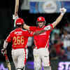 David Miller of the Kings X1 Punjab with teammate Cheteshwar Pujara celebrate the win over Rajasthan Royals in an IPL 7 match in Sharjah, on April 20, 2014.  (PTI)