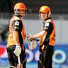 Sunrisers Hyderabad plyers David Warner and Aaron Finch punch gloves during Pepsi Indian Premier League Season 7 between the Sunrisers Hyderabad and the Delhi Daredevils at the Dubai International Stadium, Dubai (PTI)See more of :