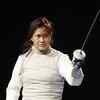 Canada's Jujie Luan tips her Foil toward opponent Tunisia's Ines Boubakri after beating Boubakri in competition in the round of 64 in women's individual Foil fencing event at the 2008 Olympics in Beijing on August 11, 2008. (AP Photo/Elaine Thompson)