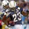 Running back LaDainian Tomlinson #21 of the San Diego Chargers runs the ball while taking on the New York Jets on September 22, 2008 at Qualcomm Stadium in San Diego. (AFP Photo/Stephen Dunn) () Running back LaDainian Tomlinson #21 of the San Diego Chargers runs the ball while taking on the New York Jets on September 22, 2008 at Qualcomm Stadium in San Diego. (AFP Photo/Stephen Dunn) /sports/other-sports/american-league/eventshow/3520369.cms06